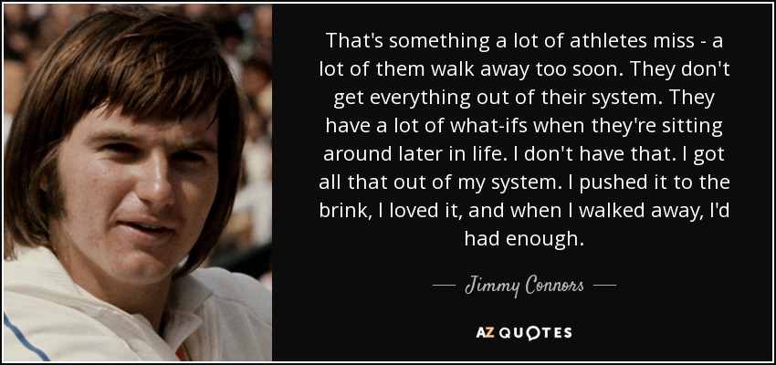 That's something a lot of athletes miss - a lot of them walk away too soon. They don't get everything out of their system. They have a lot of what-ifs when they're sitting around later in life. I don't have that. I got all that out of my system. I pushed it to the brink, I loved it, and when I walked away, I'd had enough.