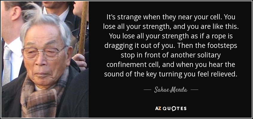 It's strange when they near your cell. You lose all your strength, and you are like this. You lose all your strength as if a rope is dragging it out of you. Then the footsteps stop in front of another solitary confinement cell, and when you hear the sound of the key turning you feel relieved.