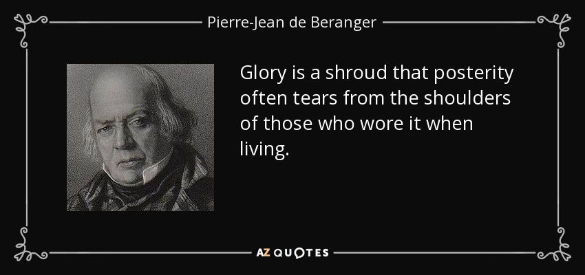 Glory is a shroud that posterity often tears from the shoulders of those who wore it when living.