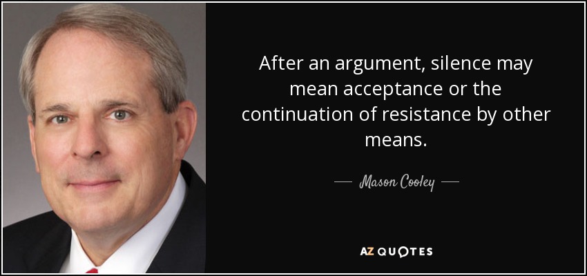 After an argument, silence may mean acceptance or the continuation of resistance by other means.