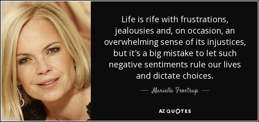 Life is rife with frustrations, jealousies and, on occasion, an overwhelming sense of its injustices, but it's a big mistake to let such negative sentiments rule our lives and dictate choices.