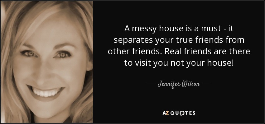 A messy house is a must - it separates your true friends from other friends. Real friends are there to visit you not your house!