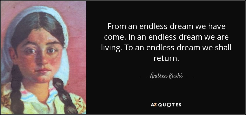From an endless dream we have come. In an endless dream we are living. To an endless dream we shall return.