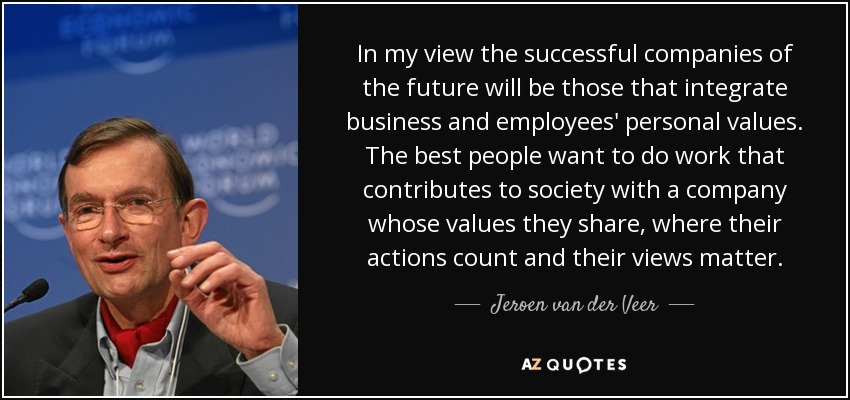 In my view the successful companies of the future will be those that integrate business and employees' personal values. The best people want to do work that contributes to society with a company whose values they share, where their actions count and their views matter.