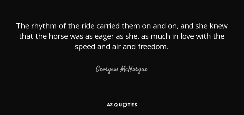 The rhythm of the ride carried them on and on, and she knew that the horse was as eager as she, as much in love with the speed and air and freedom.