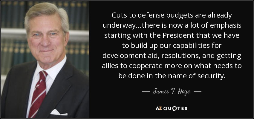 Cuts to defense budgets are already underway...there is now a lot of emphasis starting with the President that we have to build up our capabilities for development aid, resolutions, and getting allies to cooperate more on what needs to be done in the name of security.
