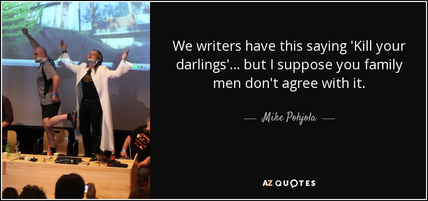 We writers have this saying 'Kill your darlings'... but I suppose you family men don't agree with it.