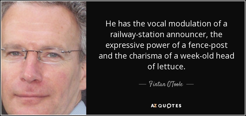 He has the vocal modulation of a railway-station announcer, the expressive power of a fence-post and the charisma of a week-old head of lettuce.