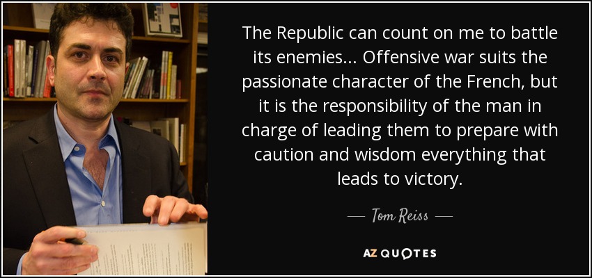 The Republic can count on me to battle its enemies... Offensive war suits the passionate character of the French, but it is the responsibility of the man in charge of leading them to prepare with caution and wisdom everything that leads to victory.
