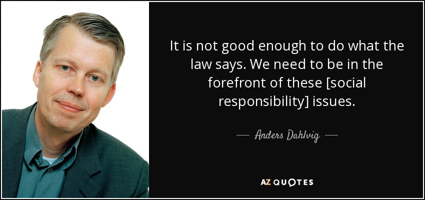 It is not good enough to do what the law says. We need to be in the forefront of these [social responsibility] issues.