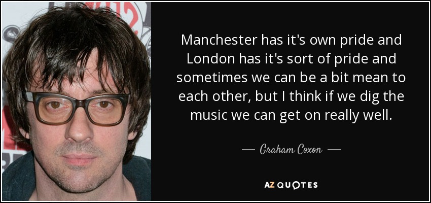 Manchester has it's own pride and London has it's sort of pride and sometimes we can be a bit mean to each other, but I think if we dig the music we can get on really well.