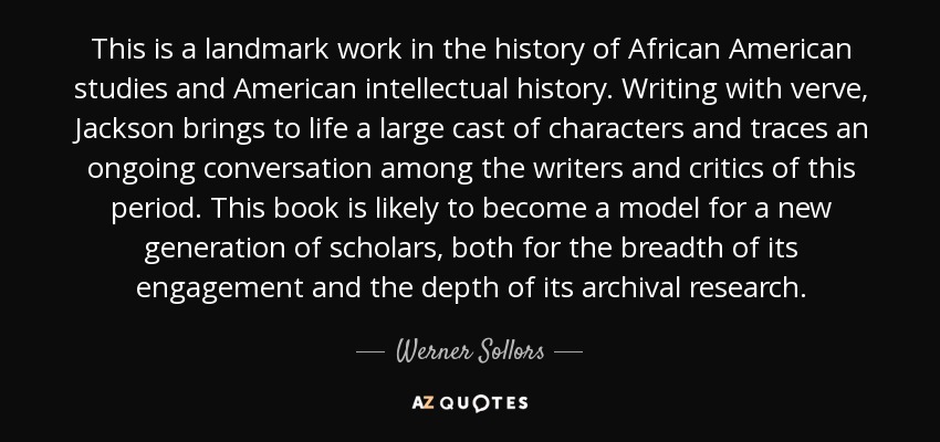 This is a landmark work in the history of African American studies and American intellectual history. Writing with verve, Jackson brings to life a large cast of characters and traces an ongoing conversation among the writers and critics of this period. This book is likely to become a model for a new generation of scholars, both for the breadth of its engagement and the depth of its archival research.
