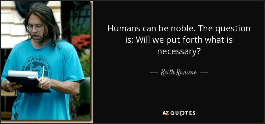 Humans can be noble. The question is: Will we put forth what is necessary?