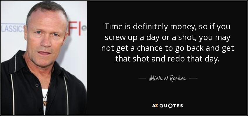 Time is definitely money, so if you screw up a day or a shot, you may not get a chance to go back and get that shot and redo that day.