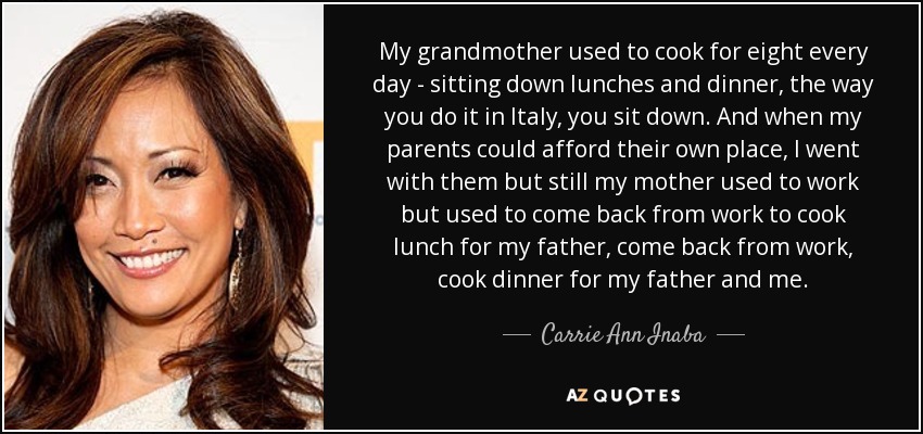 My grandmother used to cook for eight every day - sitting down lunches and dinner, the way you do it in Italy, you sit down. And when my parents could afford their own place, I went with them but still my mother used to work but used to come back from work to cook lunch for my father, come back from work, cook dinner for my father and me.
