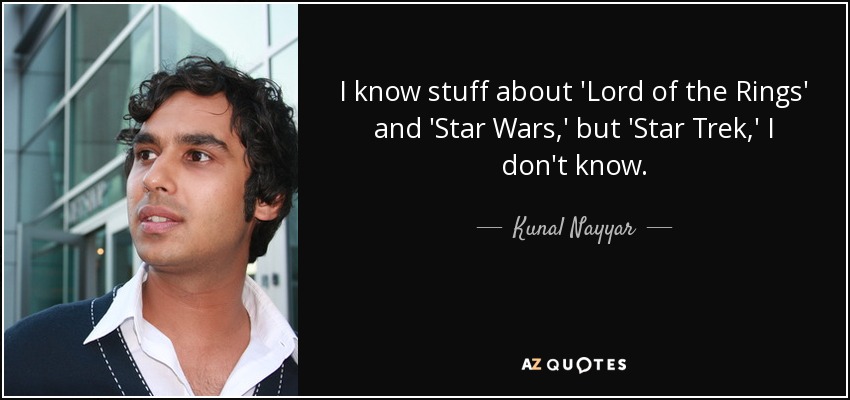 I know stuff about 'Lord of the Rings' and 'Star Wars,' but 'Star Trek,' I don't know.