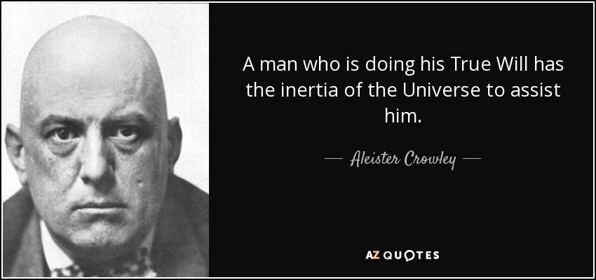 A man who is doing his True Will has the inertia of the Universe to assist him.