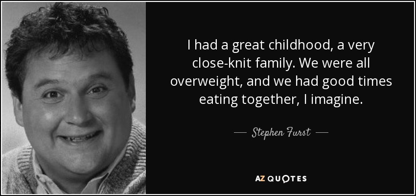 I had a great childhood, a very close-knit family. We were all overweight, and we had good times eating together, I imagine.