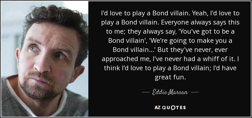 I'd love to play a Bond villain. Yeah, I'd love to play a Bond villain. Everyone always says this to me; they always say, 'You've got to be a Bond villain', 'We're going to make you a Bond villain...' But they've never, ever approached me, I've never had a whiff of it. I think I'd love to play a Bond villain; I'd have great fun.