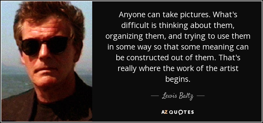 Anyone can take pictures. What's difficult is thinking about them, organizing them, and trying to use them in some way so that some meaning can be constructed out of them. That's really where the work of the artist begins.
