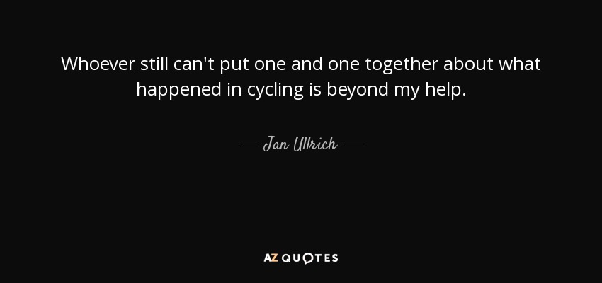 Whoever still can't put one and one together about what happened in cycling is beyond my help.