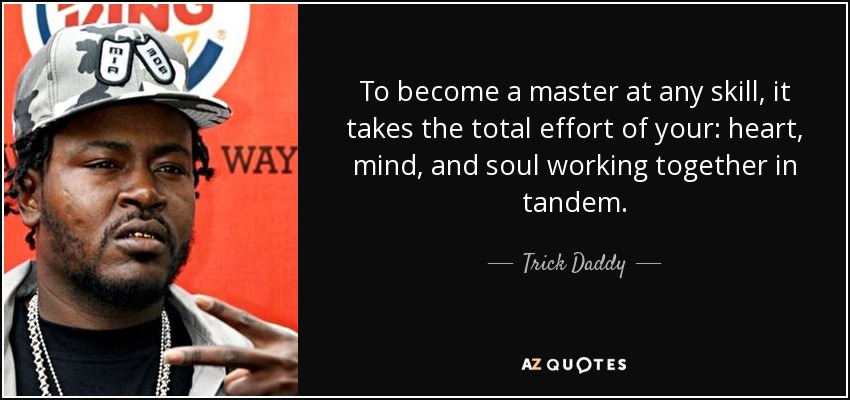 To become a master at any skill, it takes the total effort of your: heart, mind, and soul working together in tandem.