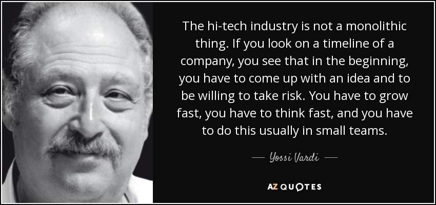 The hi-tech industry is not a monolithic thing. If you look on a timeline of a company, you see that in the beginning, you have to come up with an idea and to be willing to take risk. You have to grow fast, you have to think fast, and you have to do this usually in small teams.