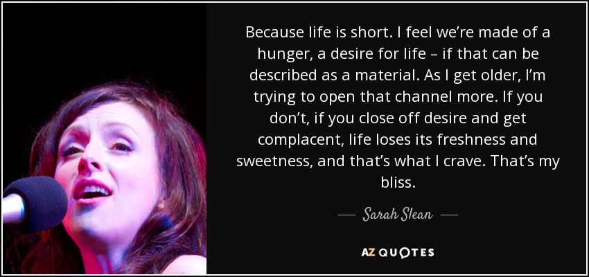 Because life is short. I feel we’re made of a hunger, a desire for life – if that can be described as a material. As I get older, I’m trying to open that channel more. If you don’t, if you close off desire and get complacent, life loses its freshness and sweetness, and that’s what I crave. That’s my bliss.