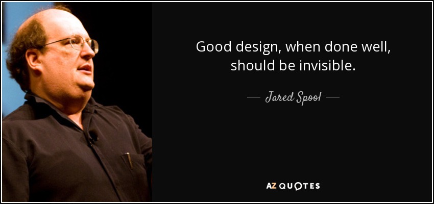 Good design, when it’s done well, becomes invisible. It’s only when it’s done poorly that we notice it. Think of it like a room’s air conditioning. We only notice it when it’s too hot, too cold, making too much noise, or the unit is dripping on us. Yet, if the air conditioning is perfect, nobody say anything and we focus, instead, on the task at hand.