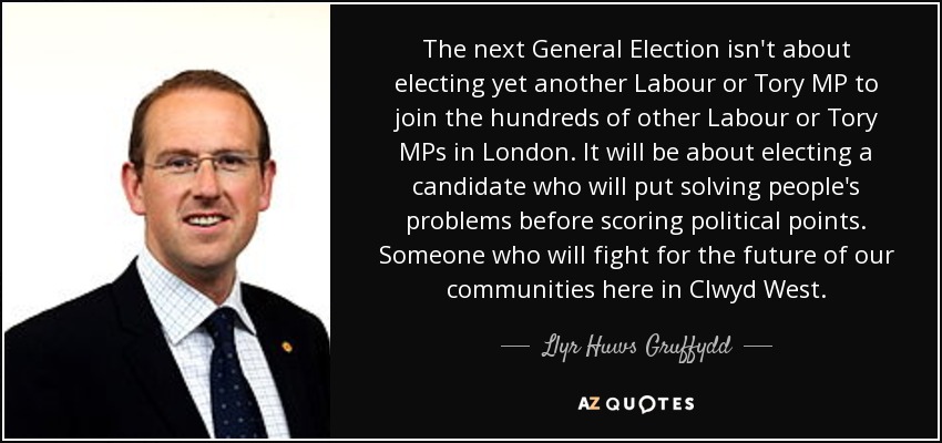 The next General Election isn't about electing yet another Labour or Tory MP to join the hundreds of other Labour or Tory MPs in London. It will be about electing a candidate who will put solving people's problems before scoring political points. Someone who will fight for the future of our communities here in Clwyd West.