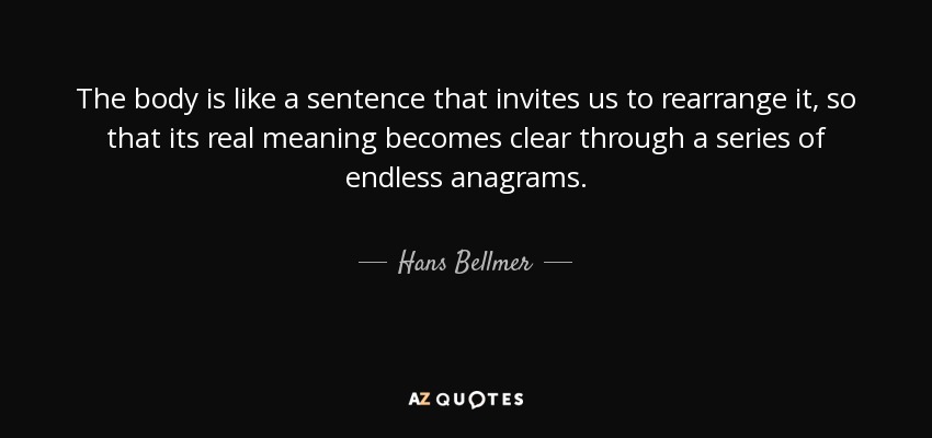 The body is like a sentence that invites us to rearrange it, so that its real meaning becomes clear through a series of endless anagrams.
