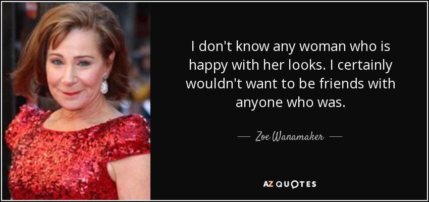 I don't know any woman who is happy with her looks. I certainly wouldn't want to be friends with anyone who was.