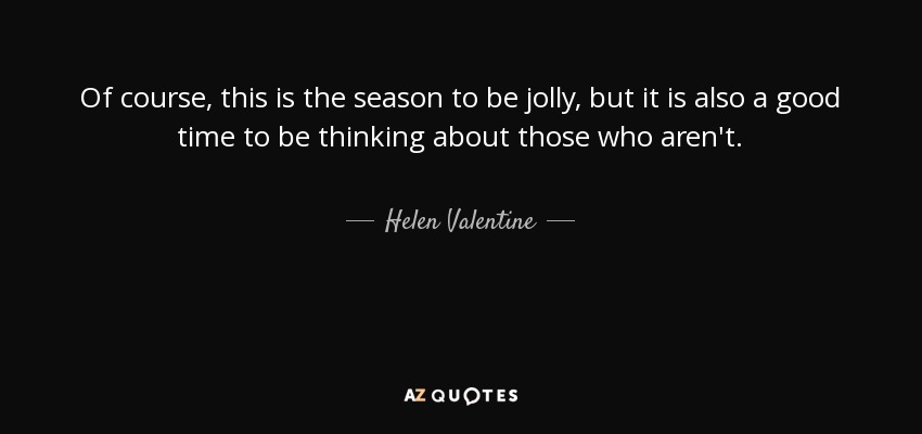Of course, this is the season to be jolly, but it is also a good time to be thinking about those who aren't.