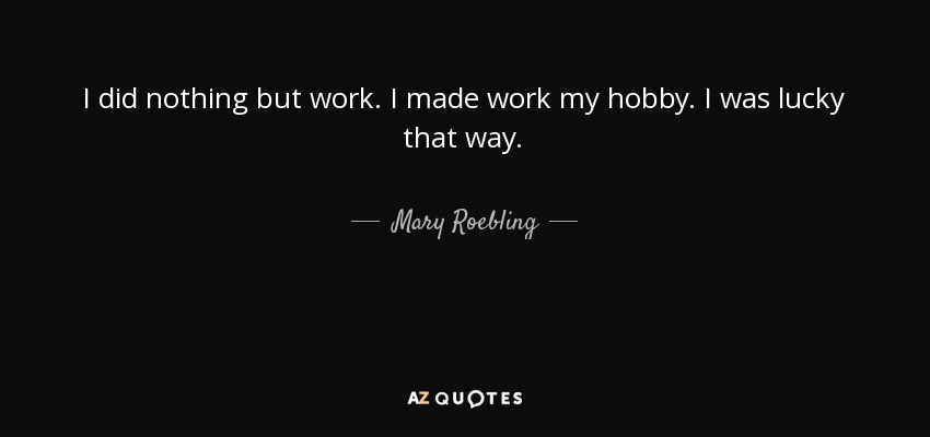 I did nothing but work. I made work my hobby. I was lucky that way.