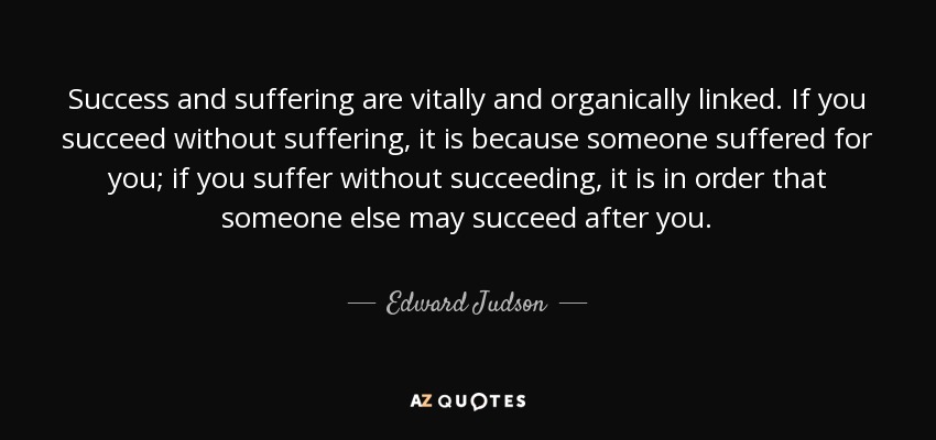 Success and suffering are vitally and organically linked. If you succeed without suffering, it is because someone suffered for you; if you suffer without succeeding, it is in order that someone else may succeed after you.