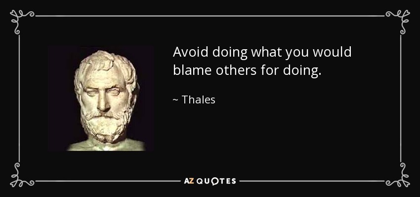 What is it that is most beautiful? - The Universe; for it is the work of God. What is most powerful? - Necessity; because it triumphs over all things. What is most difficult? - To know one's self. What is most easy? - To give advice. What method must we take to lead a good life? - To do nothing we would condemn in others. What is necessary to happiness? - A sound body and a contented mind.