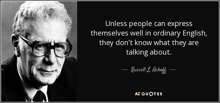 Unless people can express themselves well in ordinary English, they don't know what they are talking about.