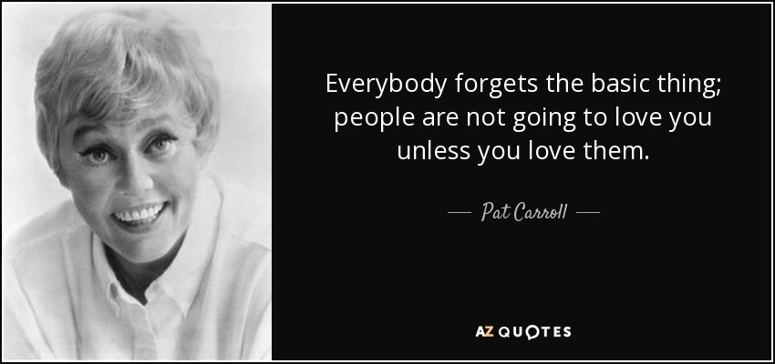 Everybody forgets the basic thing; people are not going to love you unless you love them.