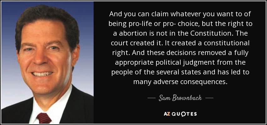 And you can claim whatever you want to of being pro-life or pro- choice, but the right to a abortion is not in the Constitution. The court created it. It created a constitutional right. And these decisions removed a fully appropriate political judgment from the people of the several states and has led to many adverse consequences.