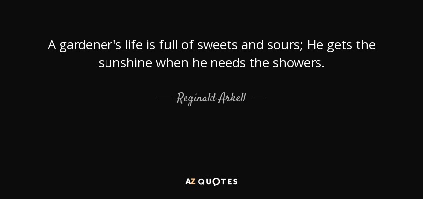 A gardener's life is full of sweets and sours; He gets the sunshine when he needs the showers.