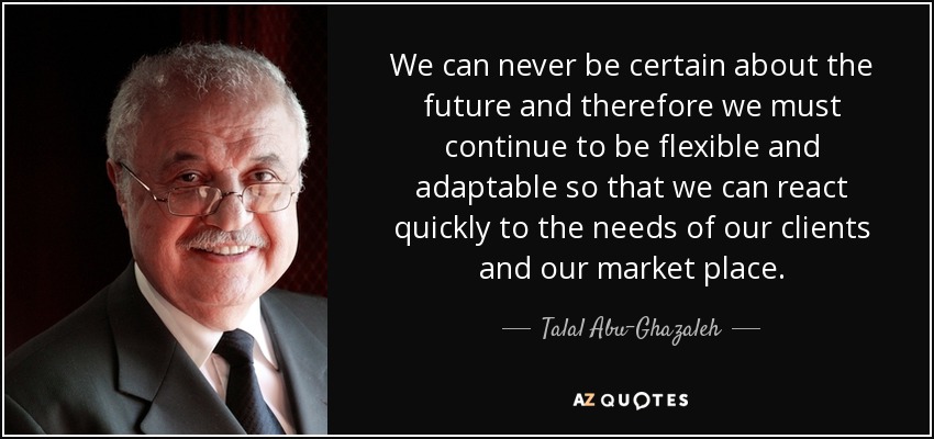 We can never be certain about the future and therefore we must continue to be flexible and adaptable so that we can react quickly to the needs of our clients and our market place.