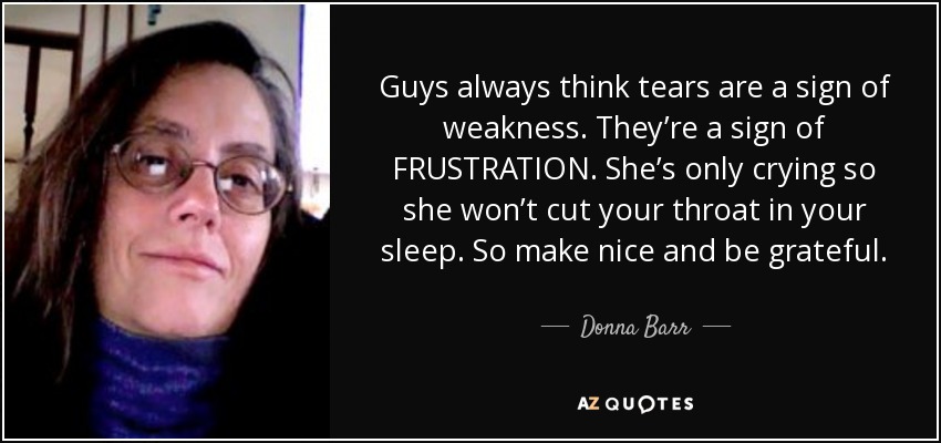 Guys always think tears are a sign of weakness. They’re a sign of FRUSTRATION. She’s only crying so she won’t cut your throat in your sleep. So make nice and be grateful.