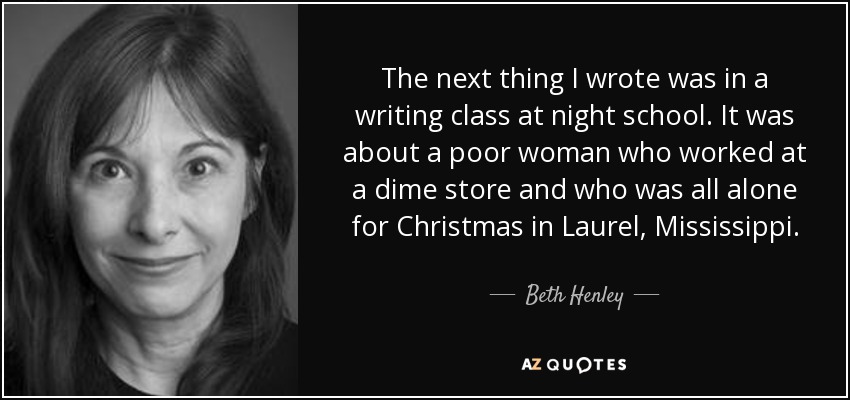 The next thing I wrote was in a writing class at night school. It was about a poor woman who worked at a dime store and who was all alone for Christmas in Laurel, Mississippi.