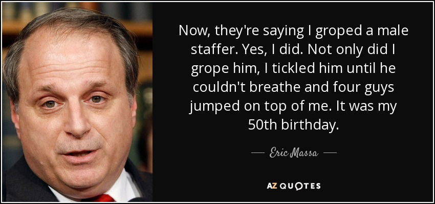 Now, they're saying I groped a male staffer. Yes, I did. Not only did I grope him, I tickled him until he couldn't breathe and four guys jumped on top of me. It was my 50th birthday.