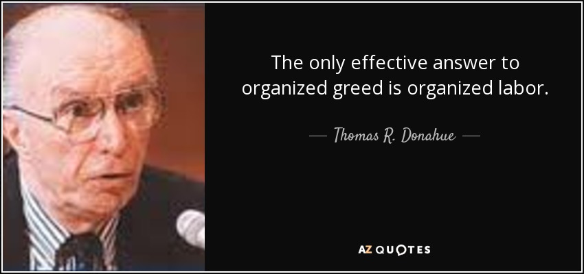 The only effective answer to organized greed is organized labor.