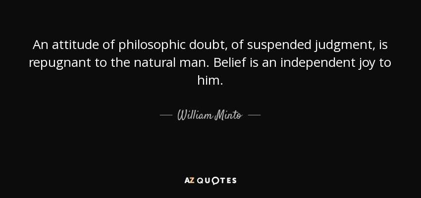 An attitude of philosophic doubt, of suspended judgment, is repugnant to the natural man. Belief is an independent joy to him.
