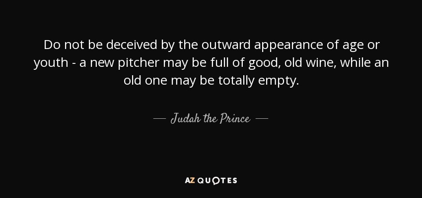 Do not be deceived by the outward appearance of age or youth - a new pitcher may be full of good, old wine, while an old one may be totally empty.
