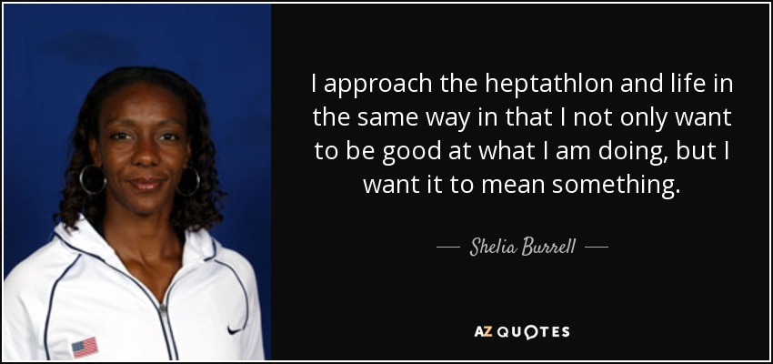 I approach the heptathlon and life in the same way in that I not only want to be good at what I am doing, but I want it to mean something.