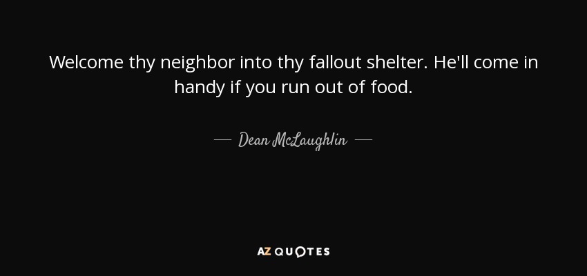 Welcome thy neighbor into thy fallout shelter. He'll come in handy if you run out of food.