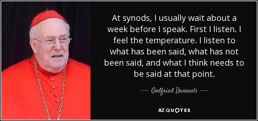 At synods, I usually wait about a week before I speak. First I listen. I feel the temperature. I listen to what has been said, what has not been said, and what I think needs to be said at that point.